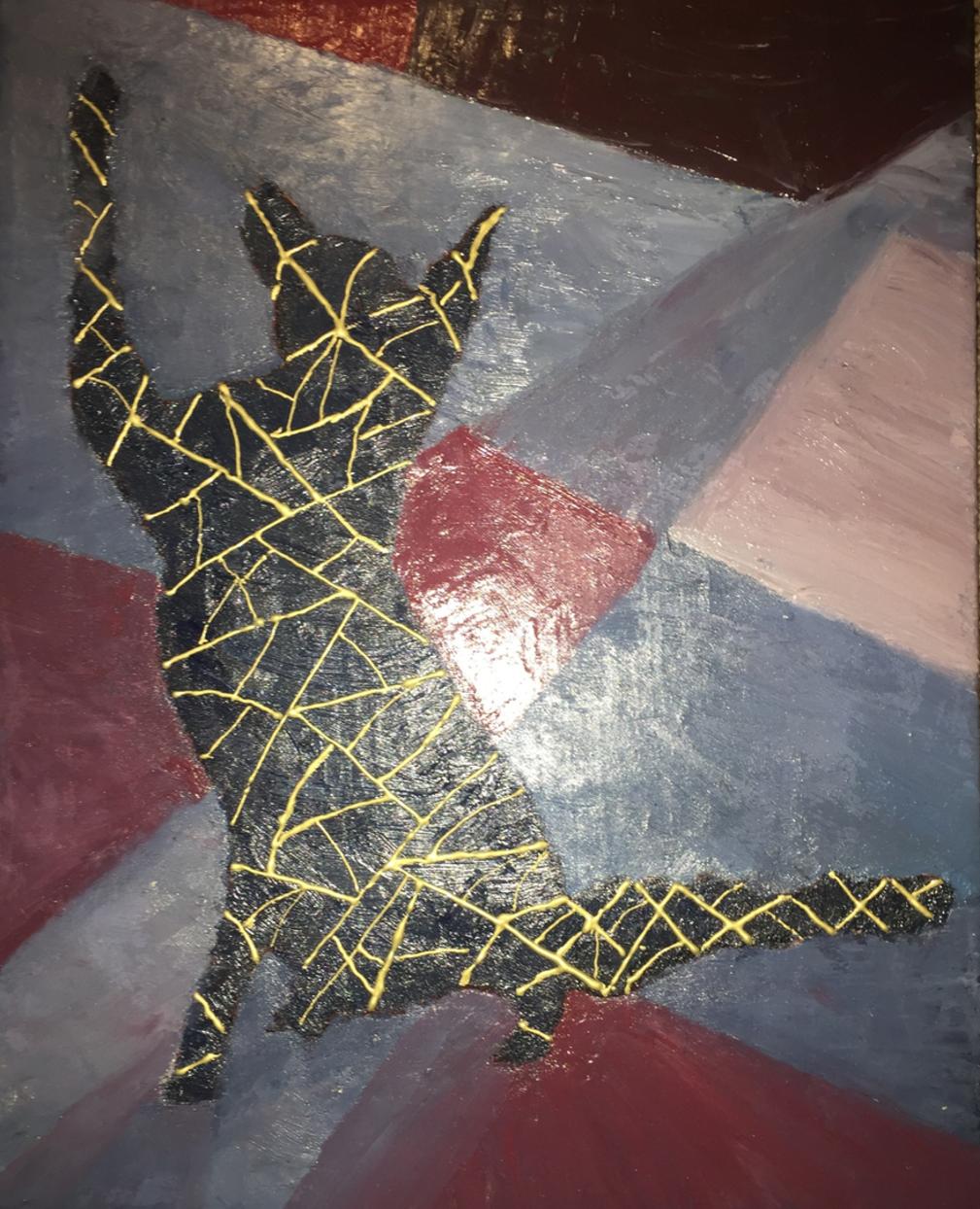 The Mosaic Blue Oil Mediums With Golden Metallic Lines Mosaic Style Rich Of Blue Oil Colors.Canvas Size "16*20"Price Is 1050.00 USD